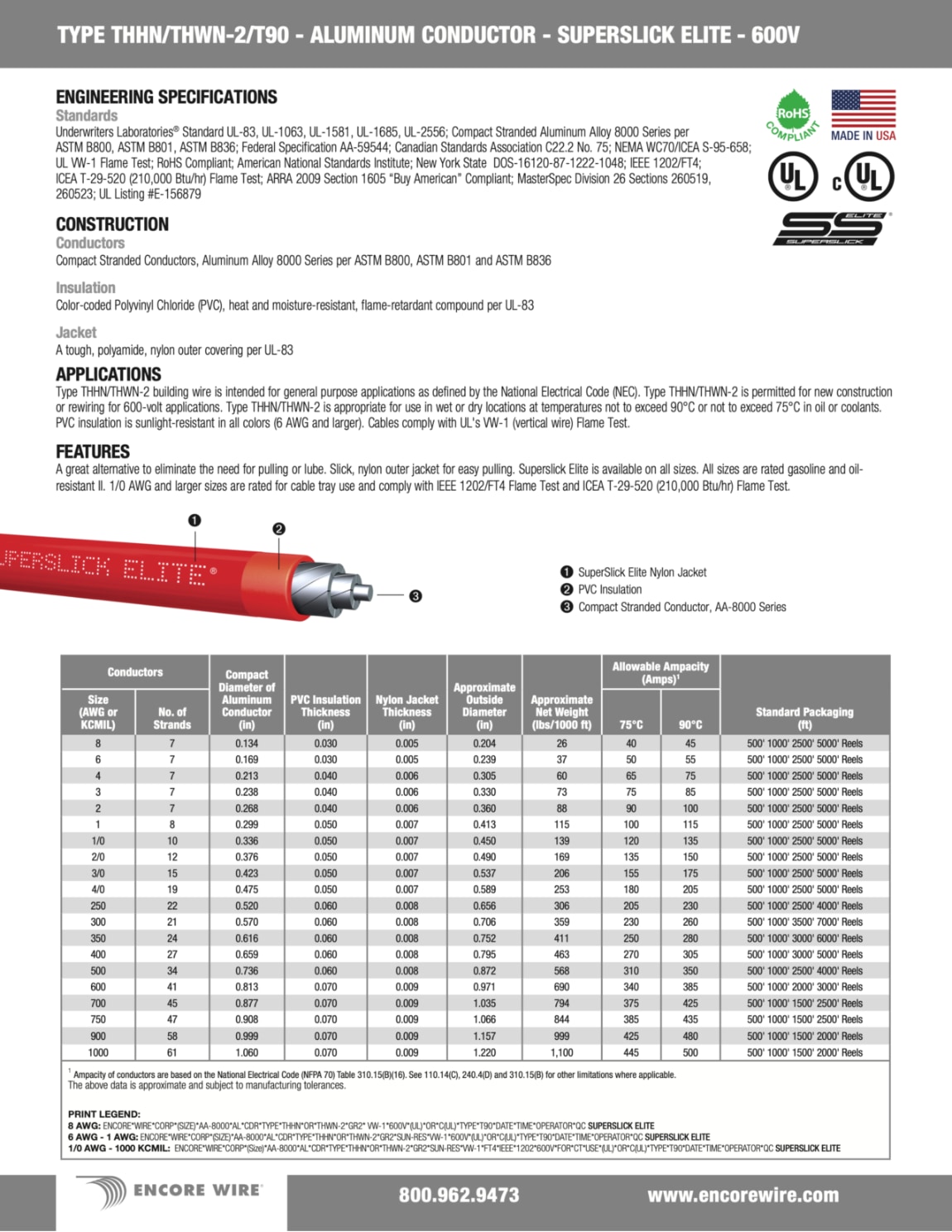 One-stop manufacturer for all of your residential, commercial and industrial wire needs. Complete line of copper and aluminum building wire including THHN/THWN-2, XHHW-2, USE-2 in all colors and sizes, bare copper, aluminum, MC cable, tray cable, NM-B, UF-B, MTW, and flexible conduit. Premier labor-saving solutions, full-service cutting and paralleling, and industry-leading delivery times. Made in America.